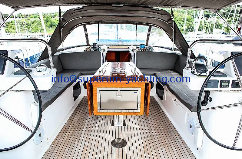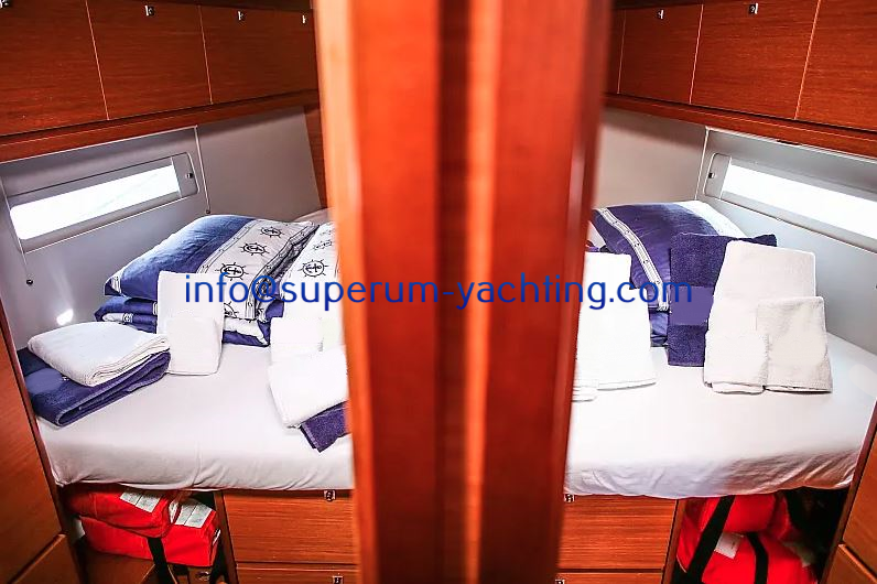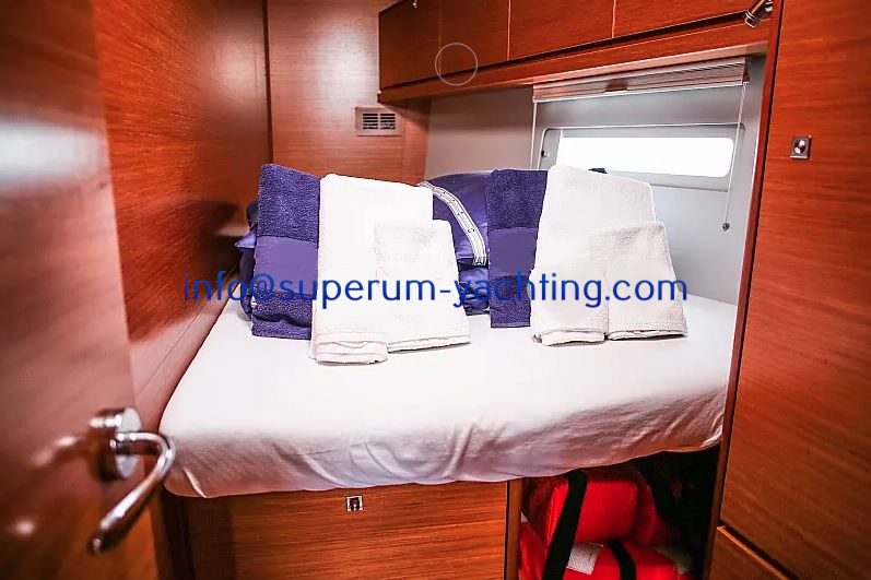 Charter boat in great condition, available for immediate sale. Layout consists of 4 double berth cabins + 1 pullman cabin + 3 bathrooms. Additional equippment: Anchor 35kg ULTRA UA35 + 85m chain + Chaincounter --- Underwater lights--- Teack cockpit, deck, roof and bathing platform --- Teak cockpit table with integrated fridge--- Barbecue + Sink on Stern--- Electric Genoa winches T55 (2x)--- Ecectric roof winch T50 Portside + manual Starboard--- Spinnaker winches T55 (2x manual)--- Moabi walls ˛floor interior in Saloon --- Leather cushions in Saloon --- Saloon table convertible into berth --- Roller blinds--- Gas stove + oven + double vertical fridge in Galley---