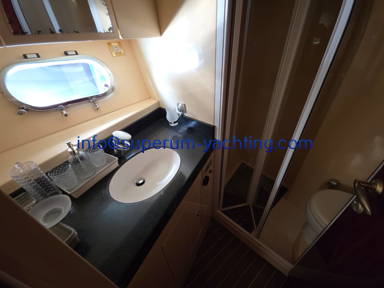 Gulf Crat Majesty 50, available for immediate sale. Very well equipped and regularly maintained, with last works performed in 2025: -New teak in cockpit and bathing platform, cleaning, polishing and antifouling of the Hull, new Zink anodes and propellers, Refitted Bowtruster with a new control console, Generator and Engine service, service of the Airconditioning system, all cushions and sunbeds on the flybridge and exterior parts replaced with new ones.