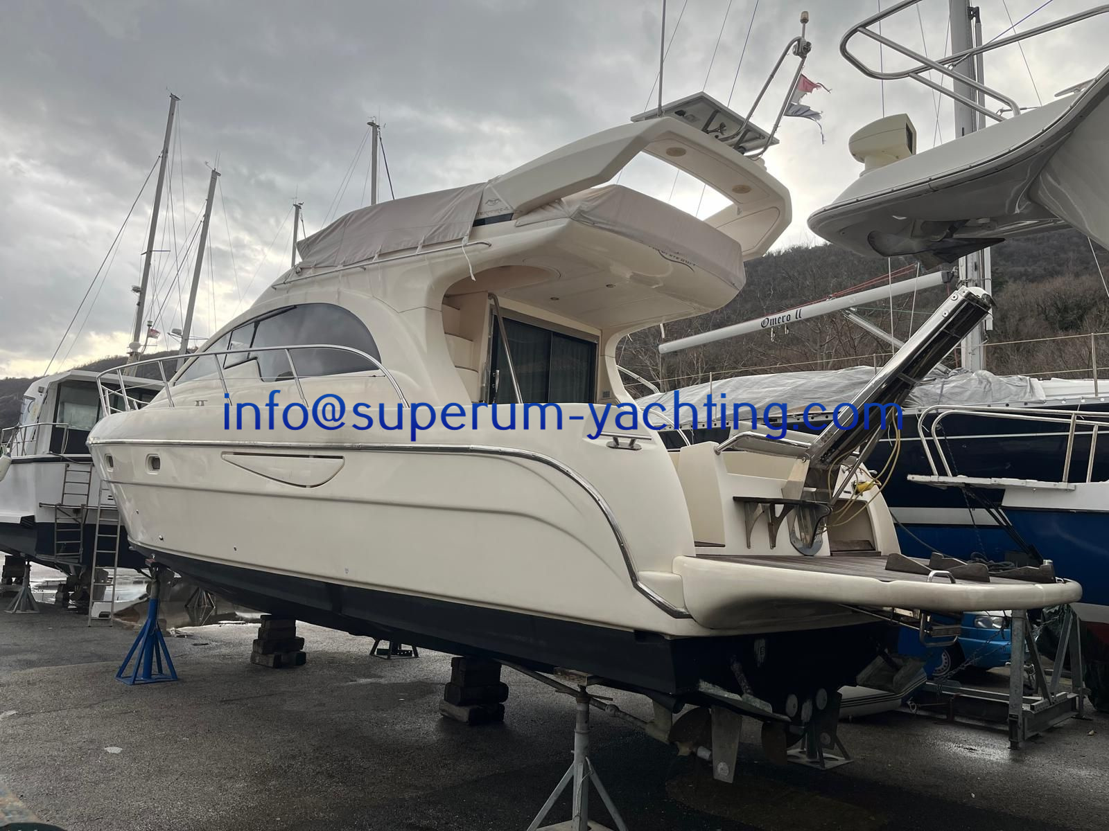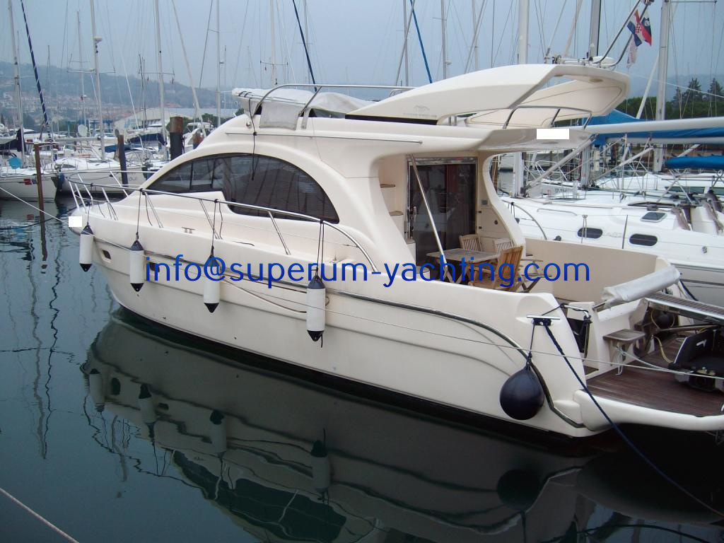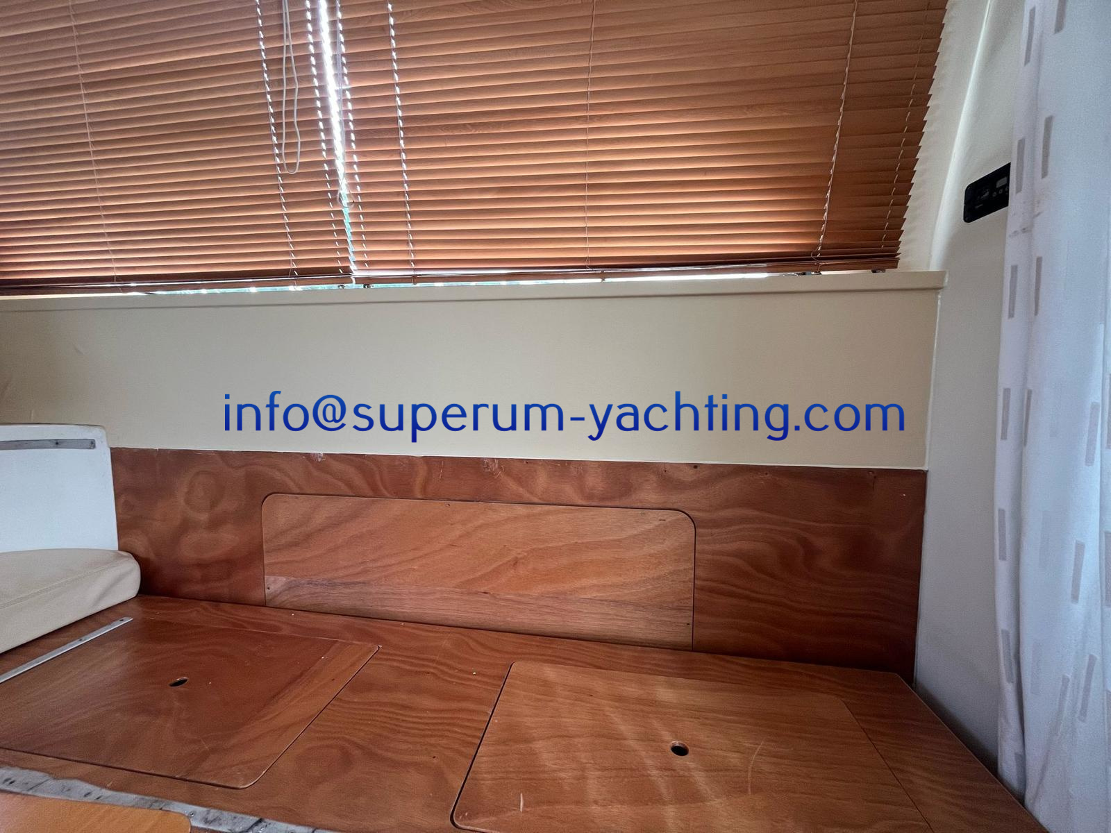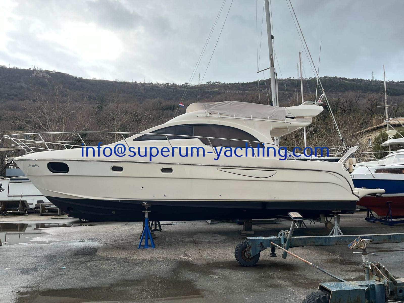 Regularly maintained Intermare 43 Fly, available for immediate sale. In water only 2 months per year, the other 10 months the vessel is stored on dry land with preserved engines, air conditioners and generator. The Intermare has remote-controlled air conditioning and heating. There are two air conditioners on the yacht, each with its own remote control. Exchangers were cleaned in 2023. New teak in cockpit- 2024. New steps for the walk-around- 2025. The left impeller pump on the engine is new, the old one was newly sealed, for backup.