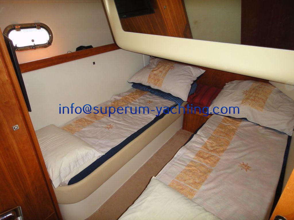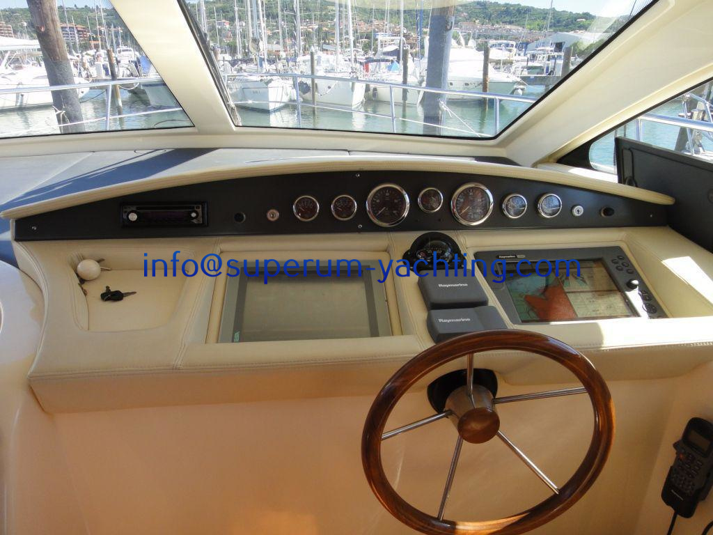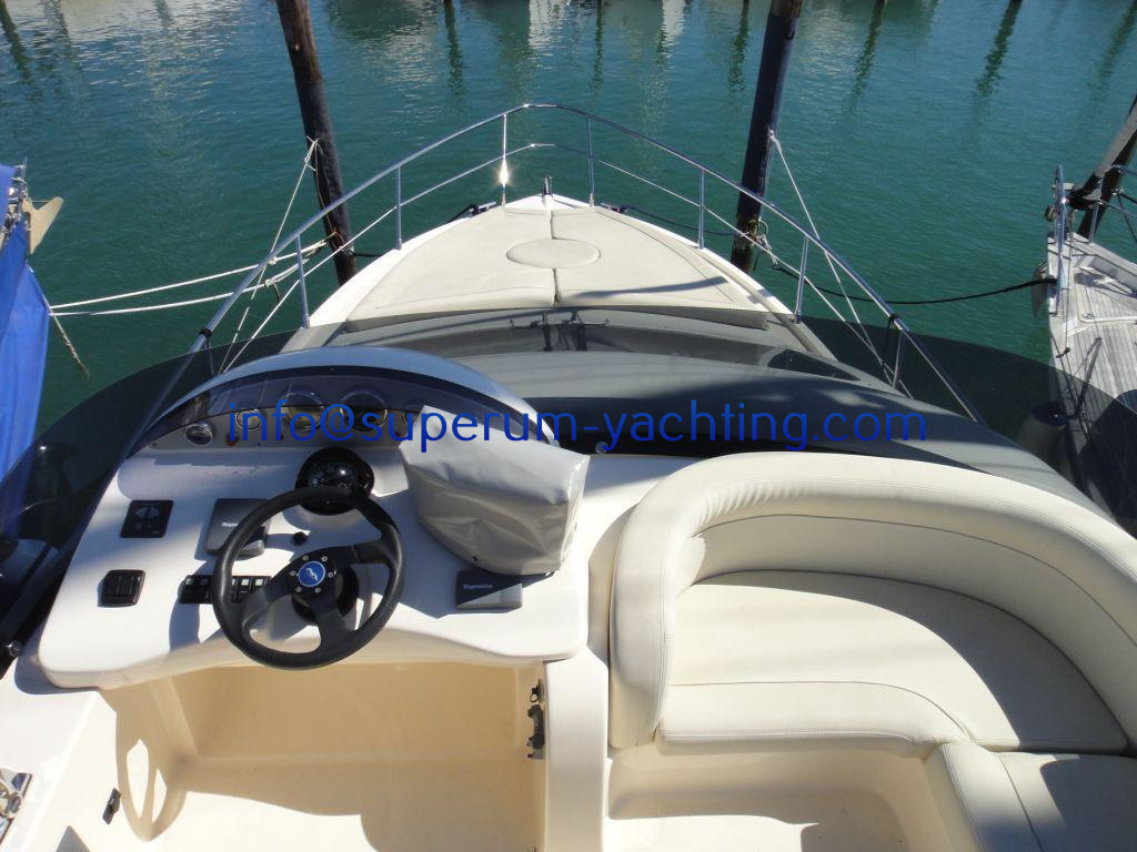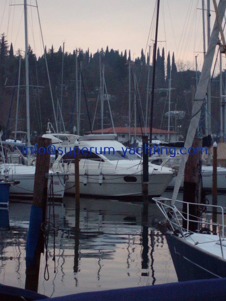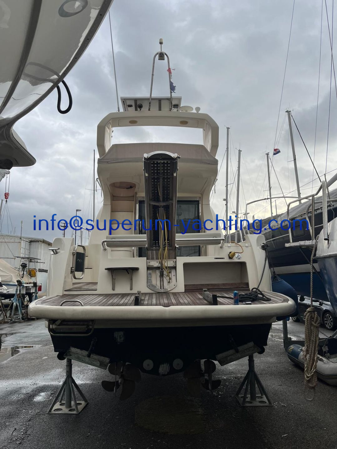 Regularly maintained Intermare 43 Fly, available for immediate sale. In water only 2 months per year, the other 10 months the vessel is stored on dry land with preserved engines, air conditioners and generator. The Intermare has remote-controlled air conditioning and heating. There are two air conditioners on the yacht, each with its own remote control. Exchangers were cleaned in 2023. New teak in cockpit- 2024. New steps for the walk-around- 2025. The left impeller pump on the engine is new, the old one was newly sealed, for backup.