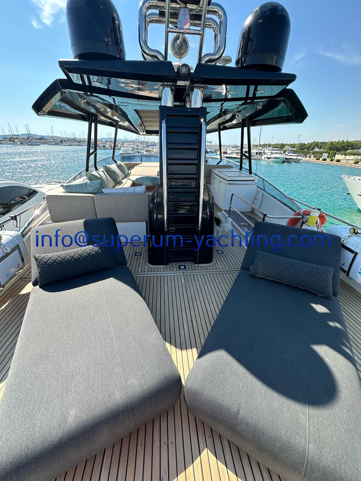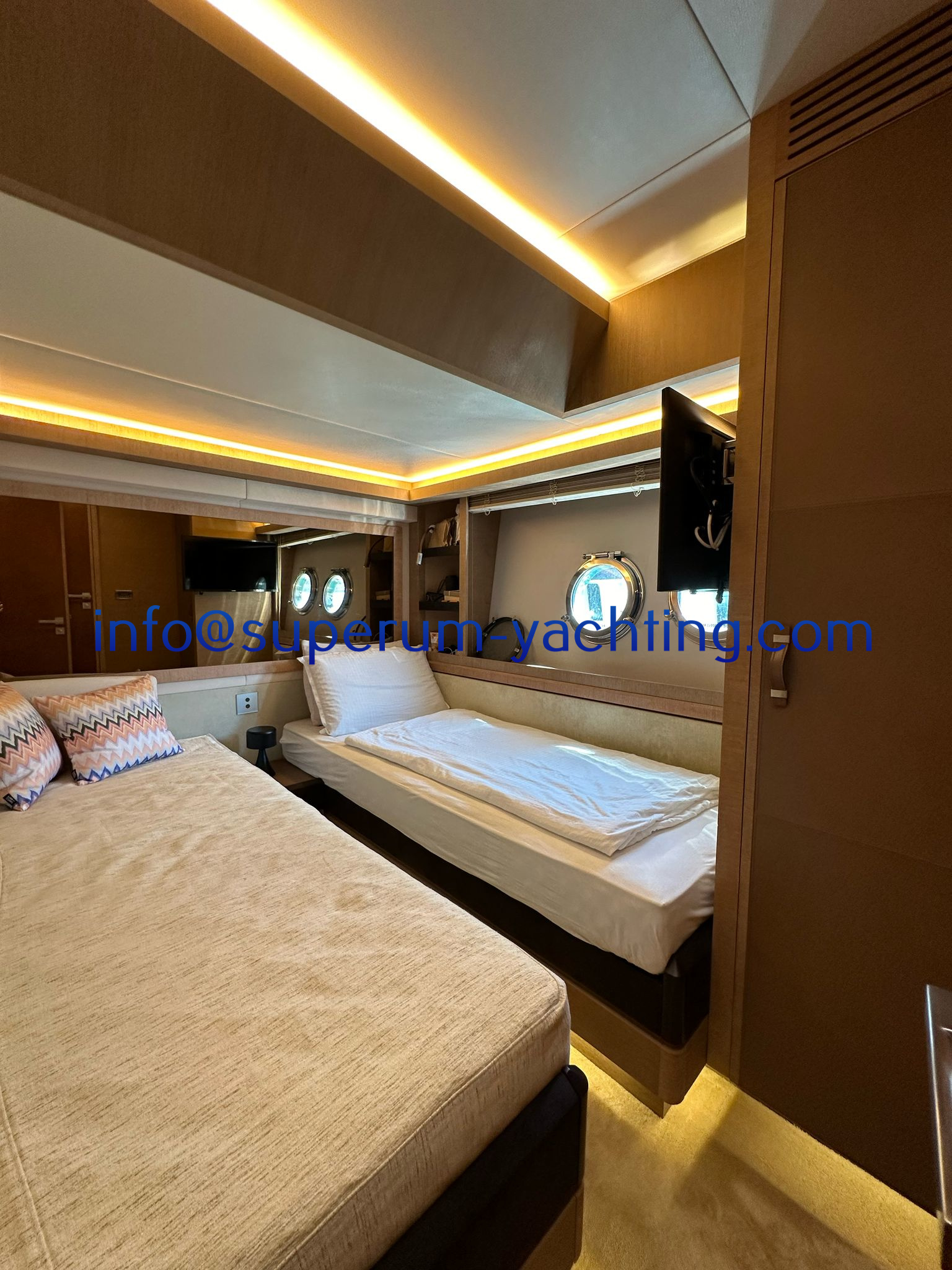 Excellently equipped Monte Carlo Yacht 76, including Humphree stabilizing system. Extensively reffited in 2024. Main works performed: -All new batteries -Service of Humphree stabilizing system -Trim Tabs service -Repainted Hull -Completely new interior -Injector service -New anchor -New LED lights -New gangway engine + gangway service -New 2x Grill on Fly. Layout consists of spacious saloon, galley, 4 cabins with 4 ensuite bathrooms + crew cabin for 2 crew members.