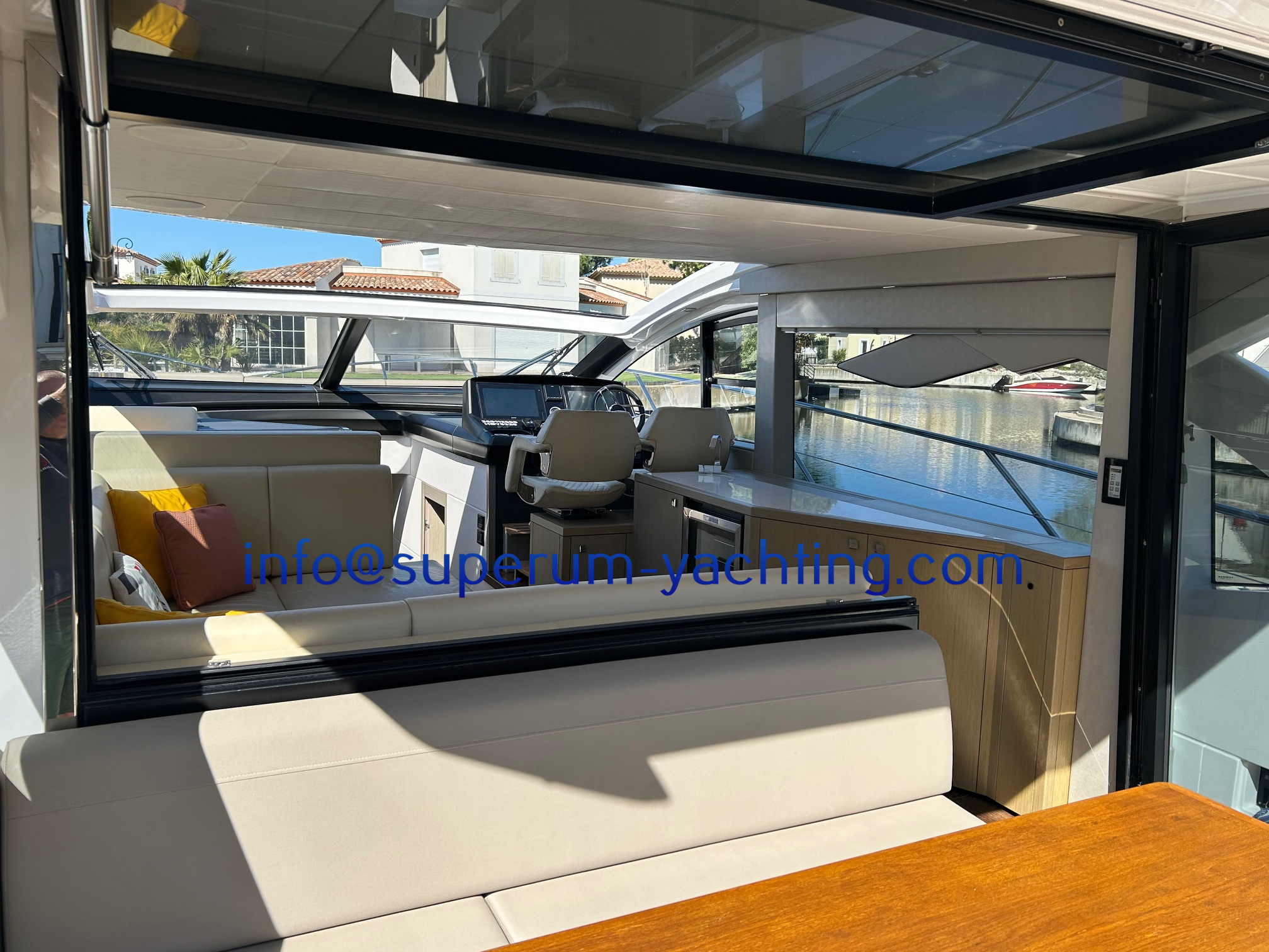 - Bimini topelectric sun awning over the cockpit from Besenzoni