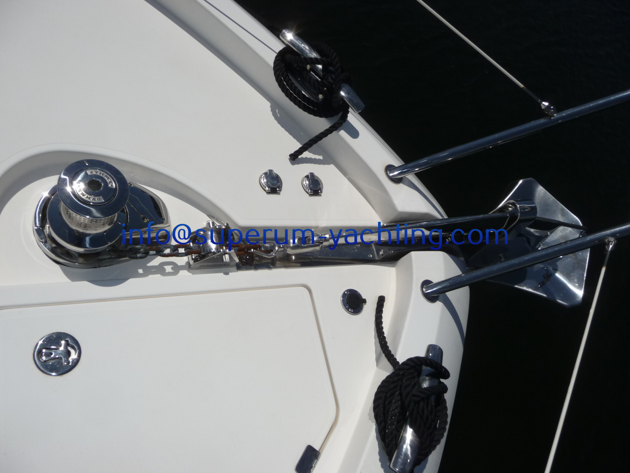 - Electric windlasswith 60m chain and 35kg stainless steel Ultra Marine anchor